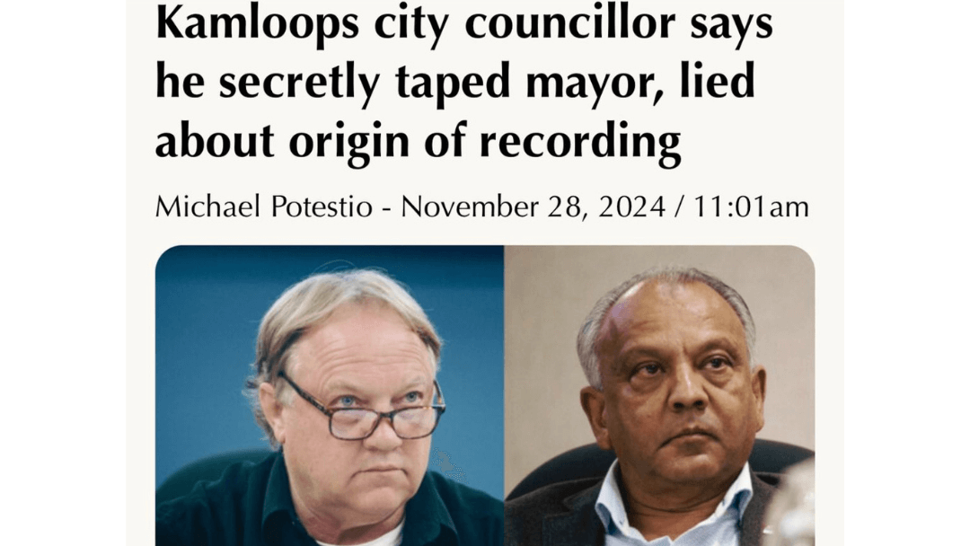 Read the Castanet article here: https://www.castanetkamloops.net/news/Kamloops/519868/Kamloops-city-councillor-says-he-secretly-taped-mayor-lied-about-origin-of-recording